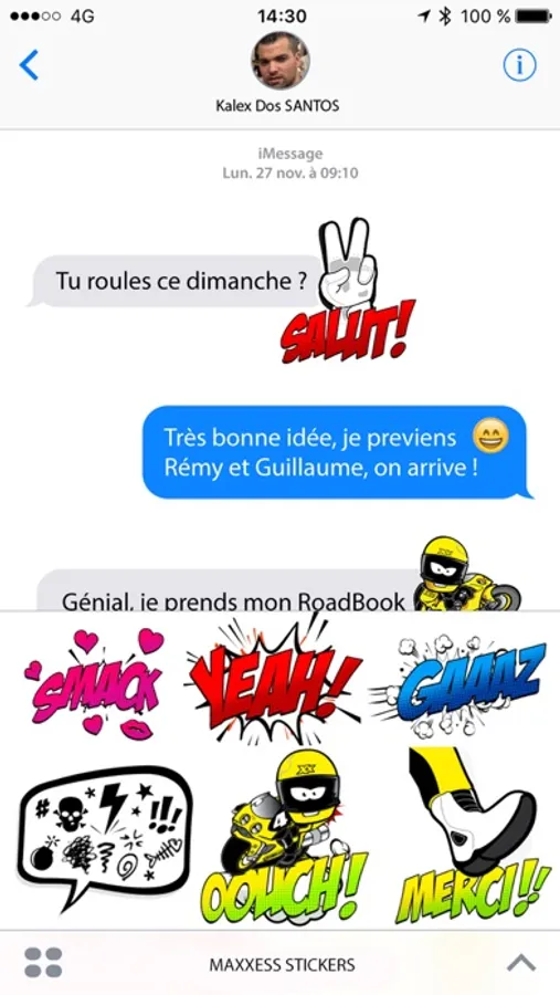 Le Géant de l’Accessoire Moto MAXXESS vous propose sa toute nouvelle collection de Stickers 100% gratuite et unique à glisser-déposer sur tous vos iMessages avec vos ami(e)s.