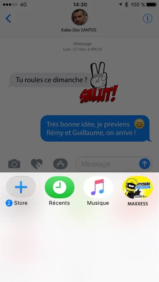Touchez l’icône « STICKERS MAXXESS » et collez les autocollants MAXXESS dans vos iMessages à volonté !