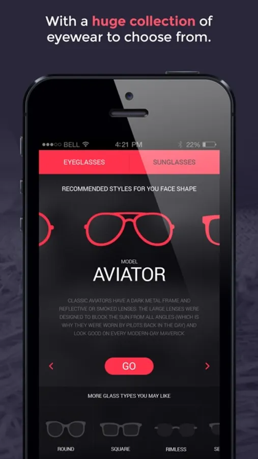 Download Glassify today and find that perfect eyeglass or sunglass that suits you!