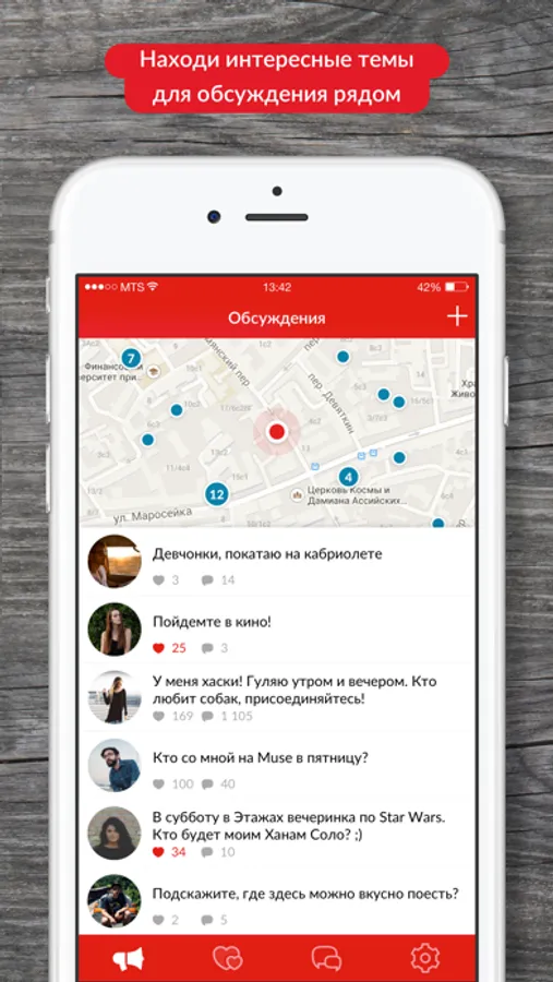 А может быть Вы любите заводить интересные беседы с окружающими или получше узнать тех, кто рядом? Тогда поднимайте злободневные вопросы или просто развлекайтесь в обсуждениях на карте.