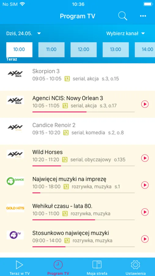- możliwość ustawienia listy ulubionych programów.