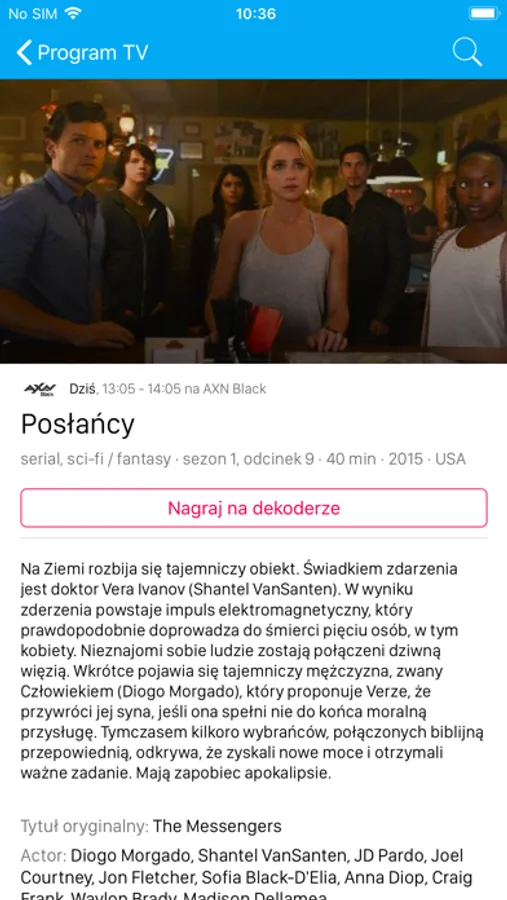Ważne: Możliwość zlecania nagrywania programów telewizyjnych dostępna dla dekoderów PVR. Aby można było zlecić nagranie programu przy wykorzystaniu aplikacji, dekoder musi być podłączony do prądu. Zlecenie nagrywania powinno nastąpić minimum 30 minut przed rozpoczęciem programu. W przeciwnym razie program może nie nagrać się w całości.