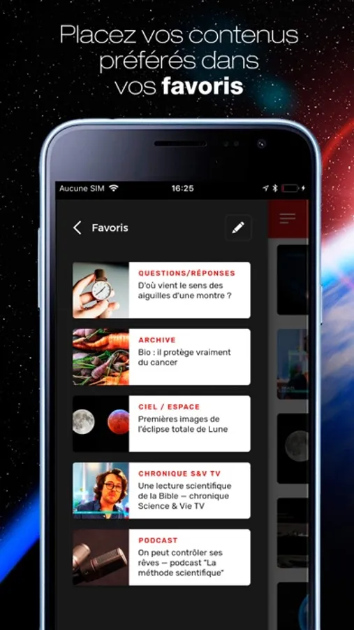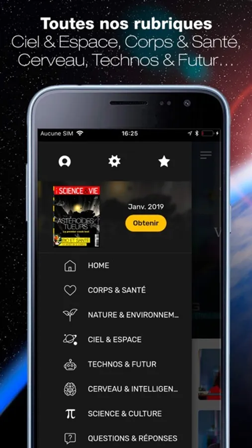 Toute l’expertise de la rédaction de Science & Vie directement sur votre mobile à travers 6 thèmes :