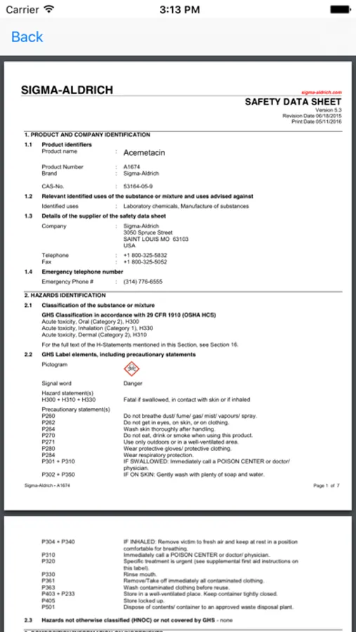 - Retrieved data is stored on the device so that critical chemical information can be accessed and viewed even when the device has no network connectivity.