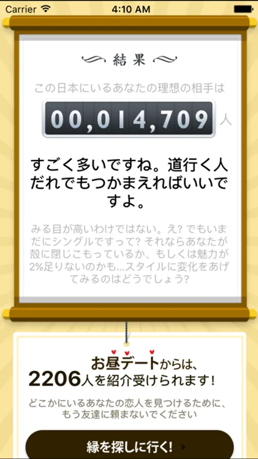 あなたが考えている理想の相手の条件を言ってください。’カレカノ計算機’が数えてさしあげます。