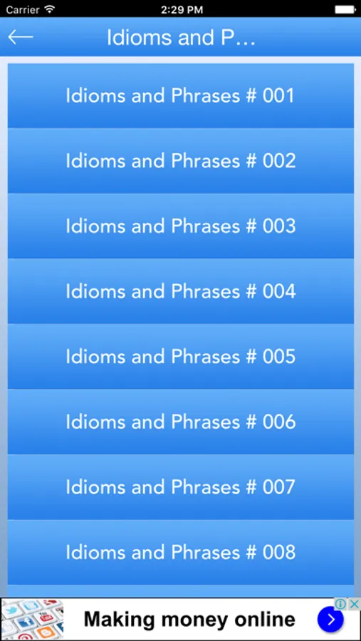 This is helpful app to you can learn Idioms , Phrases and Proverbs in English very easily and effectively. It has more than 1000 idioms and phrases, it will help you search easily and effectively