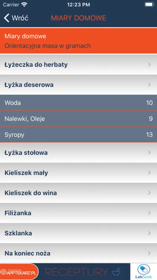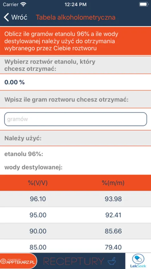 Ponadto, w aplikacji zamieszczony jest wykaz środków i substancji farmaceutycznych (wykaz A - substancje bardzo silnie działające, B - substancje silnie działające, N - środki odurzające oraz pozostałe), z odniesieniem do konkretnych receptur z użyciem danej substancji. Aplikacja uwzględnia również kalkulatory i narzędzia, gwarantujące właściwy dobór składników receptury.