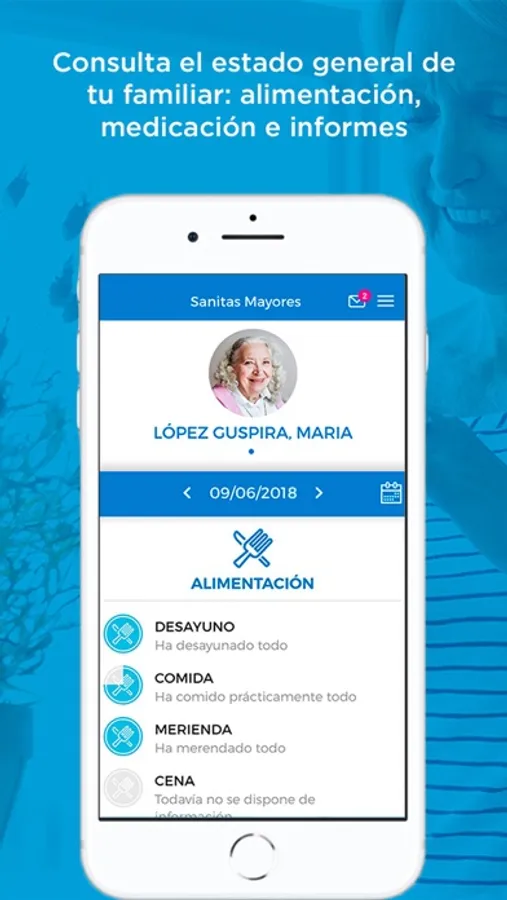 • Verás de un solo vistazo cómo ha sido su día, su alimentación, la higiene, los cambios de medicación y los últimos informes médicos.