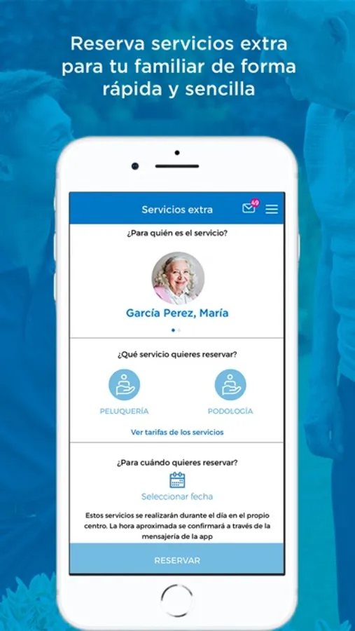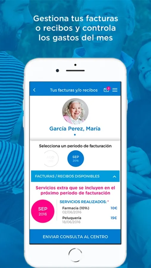 • Podrás comunicarte directamente con el equipo que cuida de tu familiar y recibir la respuesta en la misma aplicación.