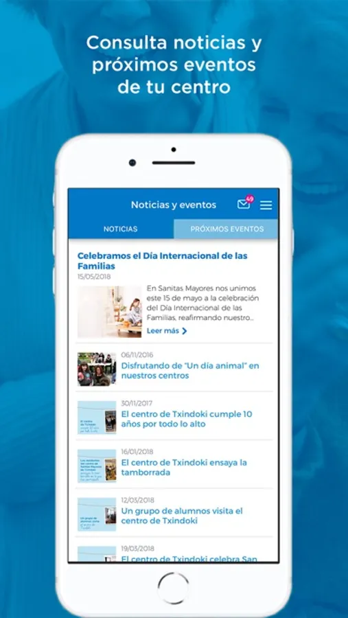 • Verás las últimas noticias del centro, los eventos que realiza y a los que pueden asistir todos los familiares.