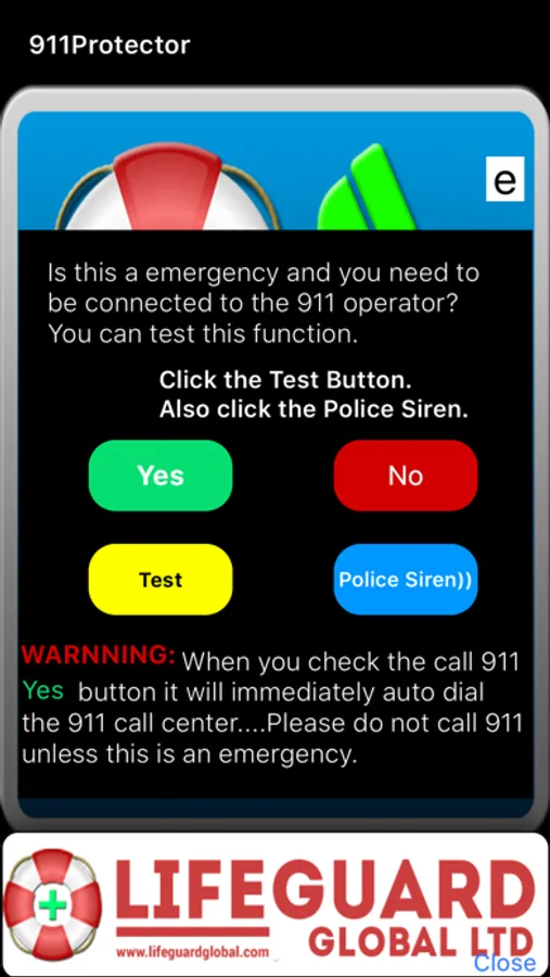 No fumbling around to dial an emergency number, just click the “Yes” button. In addition, if for any reason you feel threatened please click the Police Siren button. You are NOT alone! 911 PROTECTOR can help you stay safe.
