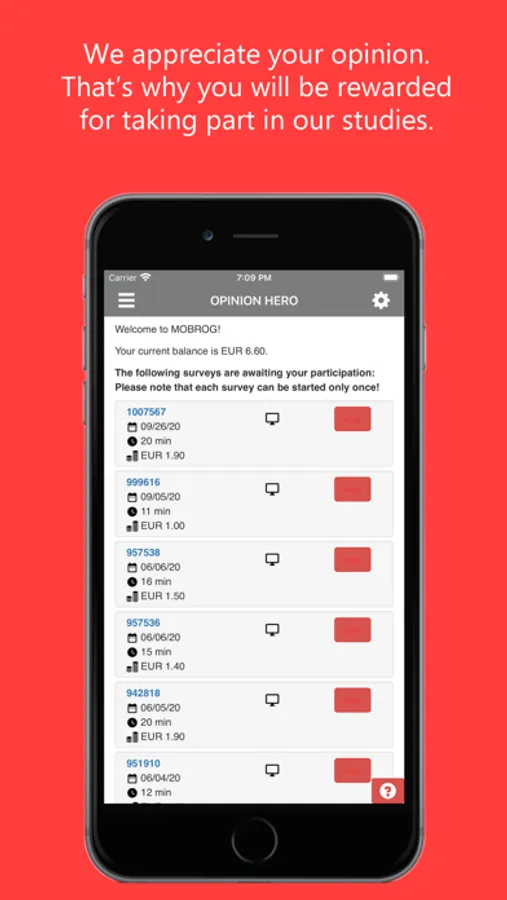 As an OPINION HERO you are rewarded for sharing your opinions. We appreciate your views and we would like to give something back to you for taking part in our studies.