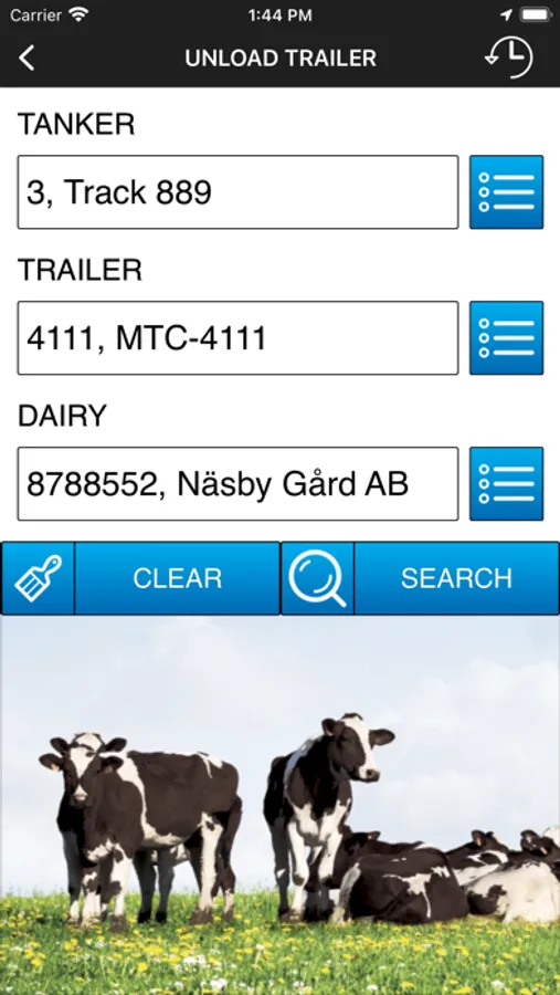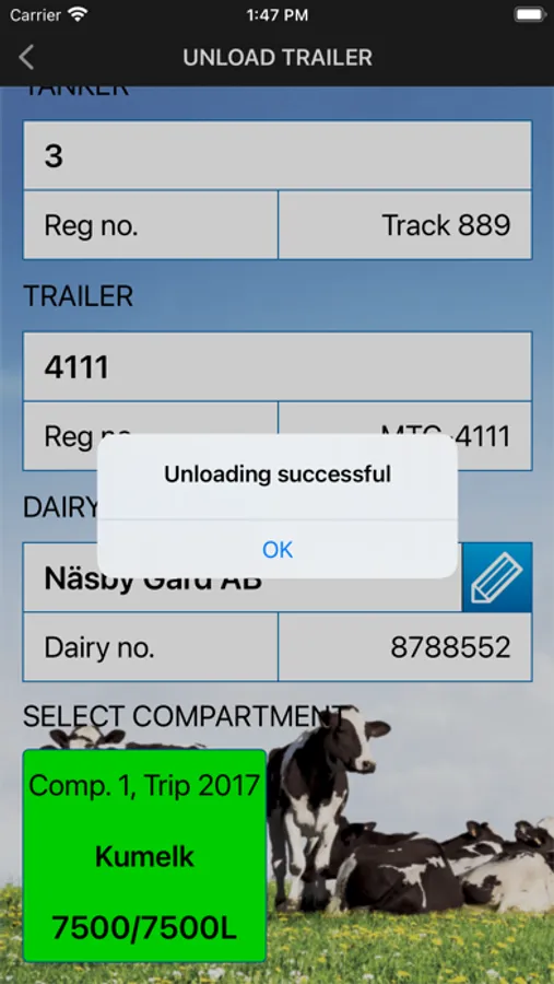 App from Poul Tarp A/S for viewing status of milk trucks
