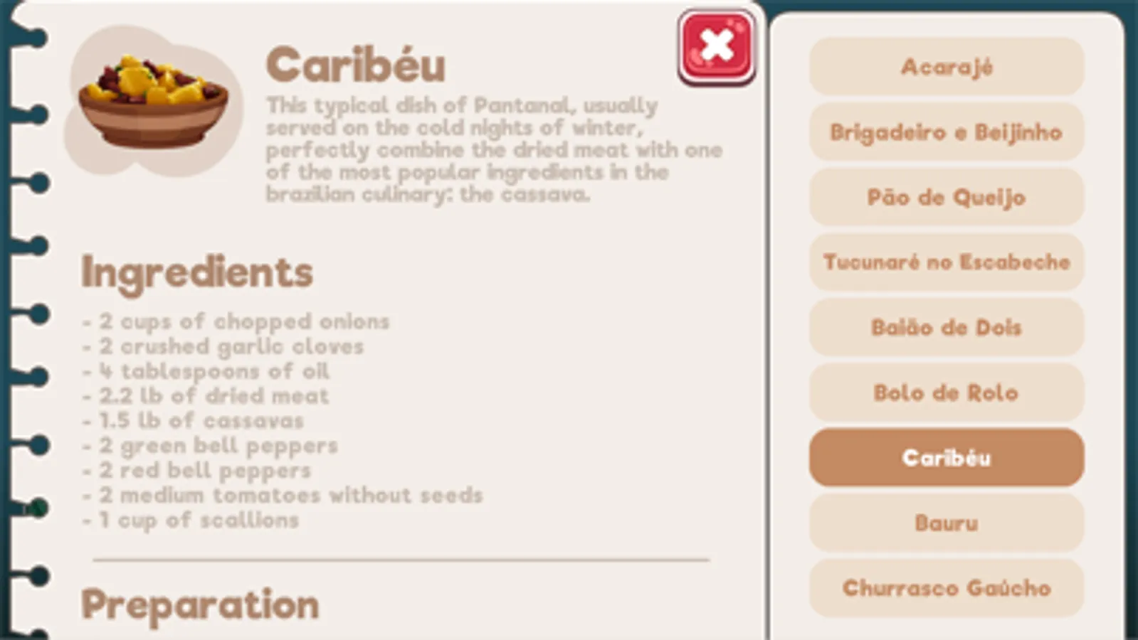 Let's join him in this amazing adventure through the Brazil and learn some recipes while playing.