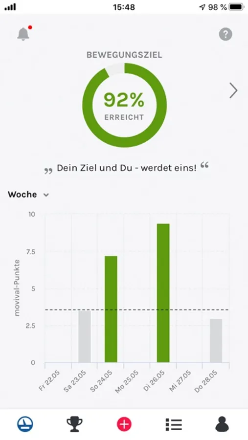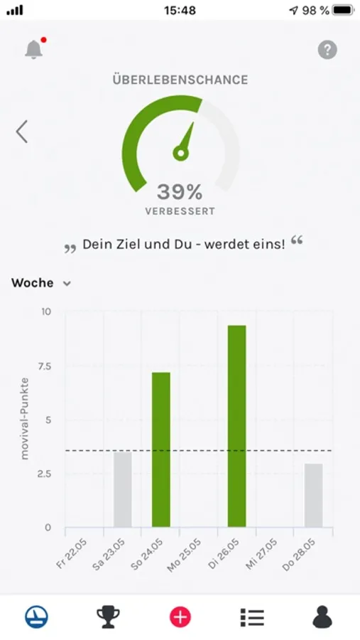 Das „movival-Prinzip“ ist sehr einfach und doch so wirkungsvoll: Sie setzen sich nach Rücksprache mit Ihrem Arzt und auf der Basis wissenschaftlicher Empfehlungen ein Bewegungsziel – und wir motivieren Sie, Ihre Ziele zu erreichen.