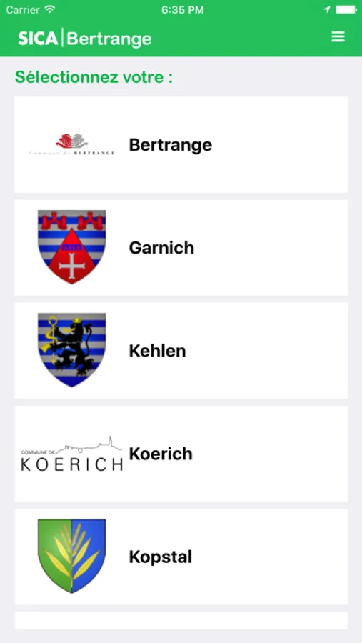 Cette application a été créée afin de faciliter la communication entre les habitants des communes membres et le SICA. Pour commencer, vous pouvez choisir entre trois langues à savoir le français, l’allemand et l’anglais.