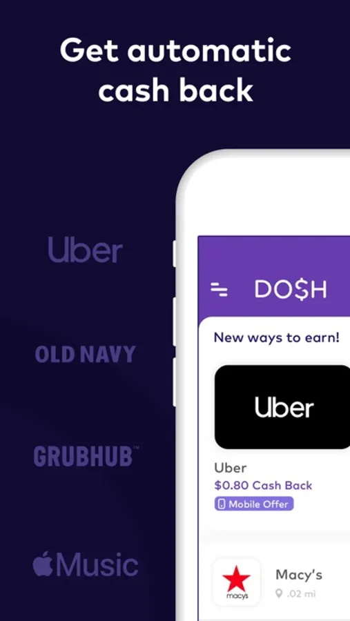 - Get cash back automatically - Unlike other cash back apps, there’s no need to cut coupons, scan receipts, or remember discount codes. Through secure credit and debit card connections, Dosh automatically finds existing offers, redeems them, then puts the cash into your Dosh Wallet.