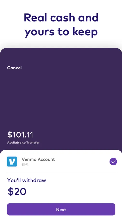 5. Use Your Cash However You Want - Transfer your cash to your Venmo, PayPal, or donate to charity from the app.