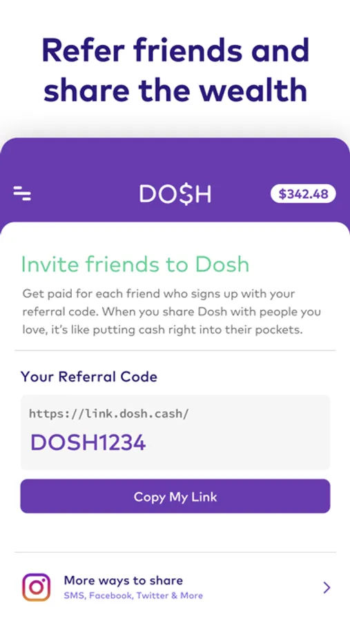 - Refer friends & family - Get paid for each friend who signs up with your referral code. When you share Dosh with people you love, it’s like putting cash right into their pockets.