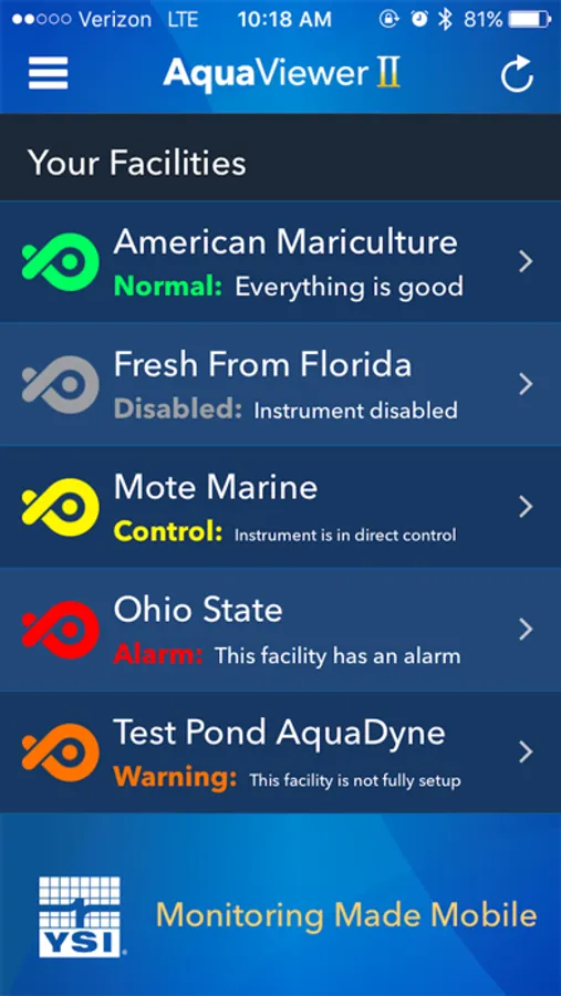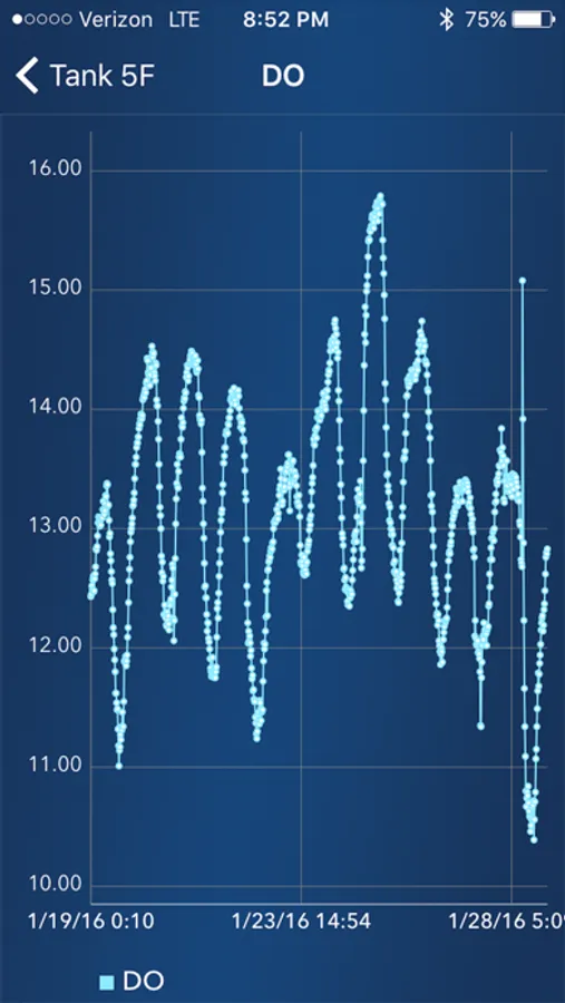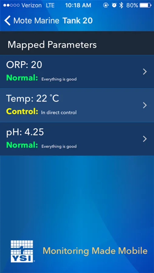 The YSI AquaViewer II App displays current and logged data
