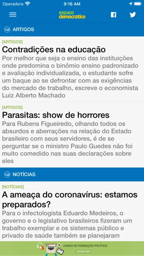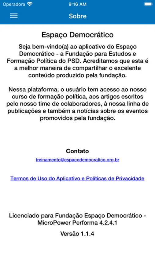 Seja bem-vindo(a) ao aplicativo do Espaço Democrático - a Fundação para Estudos e Formação Política do PSD. Acreditamos que esta é a melhor maneira de compartilhar o excelente conteúdo produzido pela fundação.