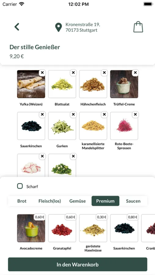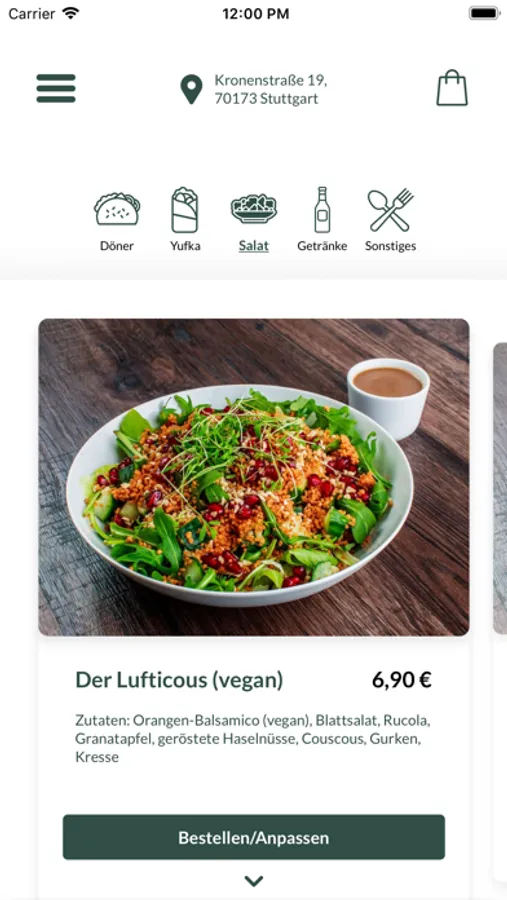 Mit unserem Döner- und Salat-Generator kannst du aber auch Deiner Kreativität freien Lauf lassen. Wähle hierzu aus einer Vielzahl an hochwertigen und außergewöhnlichen Zutaten und erstelle so Deinen persönlichen Döner ganz nach Deinem Geschmack. Lebe Deine Vorlieben aus und vermeide Unverträglichkeiten.