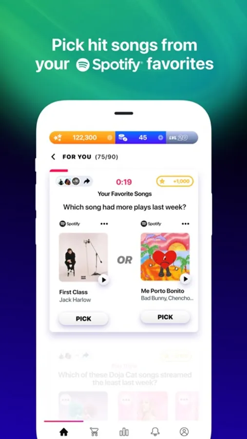 ▶ PLAY CHALLENGES — connect to Spotify, or choose your favorite genres, to play contests featuring hit songs and music you love. Use your points to buy real merch drops and exclusive experiences.