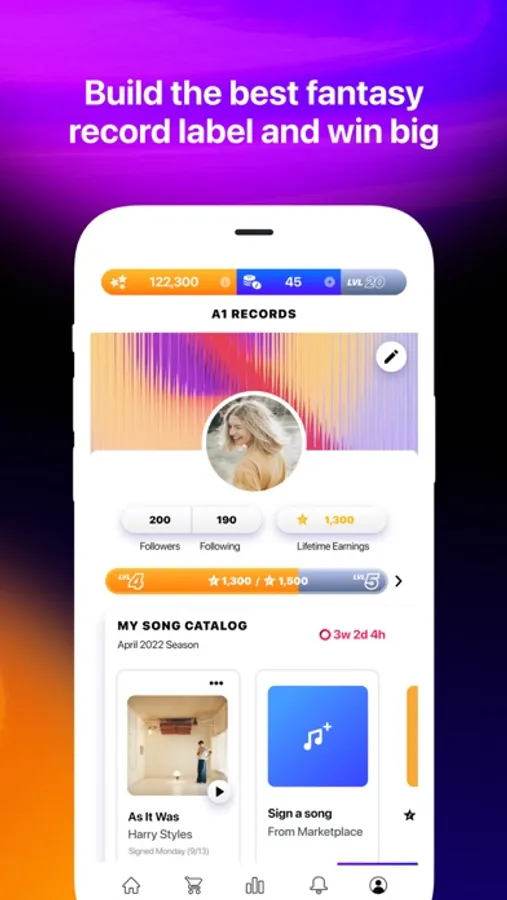 Play “fantasy sports”-like challenges for music as the owner of your own fantasy record label. Create your label, sign songs based on song plays, earn points, rise to the top of the leaderboard, and cash in for merch and experiences.