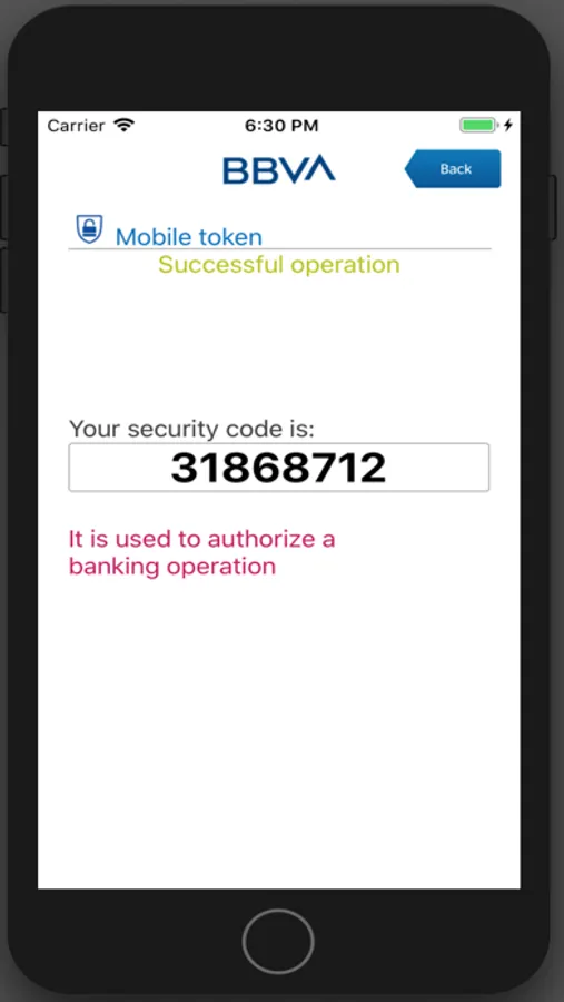 Aplicación que genera claves de seguridad para el acceso a entidades externas que ofrecen un servicio a BBVA México.