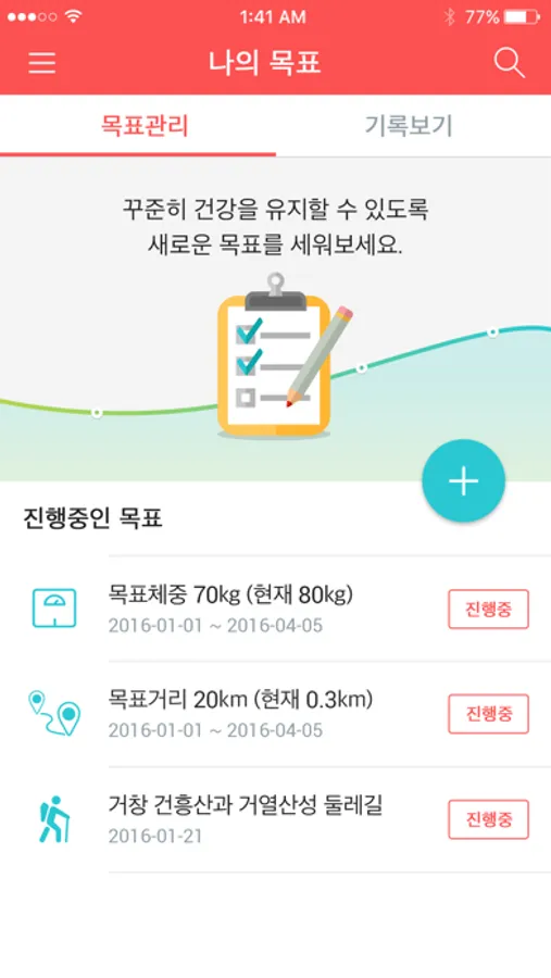 - 나의 목표 설정을 통해 건강관리를 할 수 있습니다.