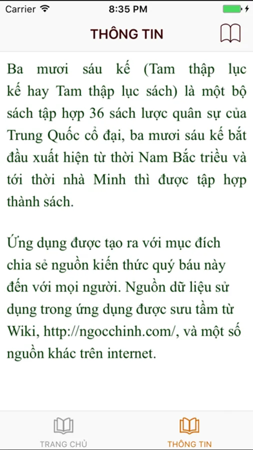 Ứng dụng được tạo ra với mục đích chia sẻ nguồn kiến thức quý báu này đến với mọi người. Nguồn dữ liệu sử dụng trong ứng dụng được sưu tầm từ Wiki, http://ngocchinh.com/, và một số nguồn khác trên internet.