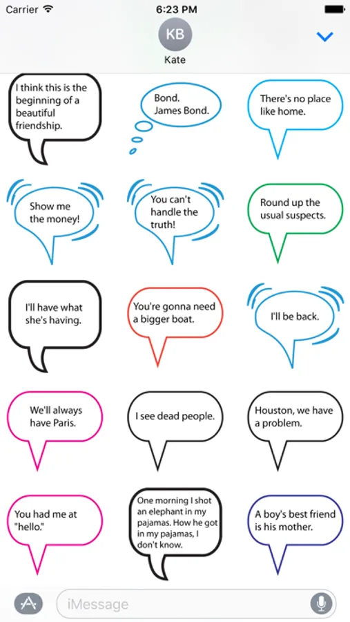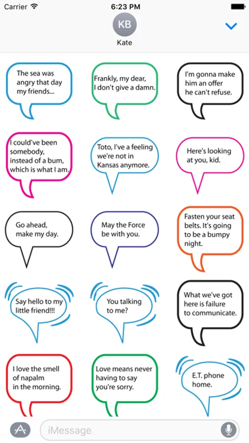 Never again will you be lost for words! Everyone loves an appropriate (or inappropriate) movie quote dropped at the right time. This sticker pack includes 35 of the best movie quotes of all time.