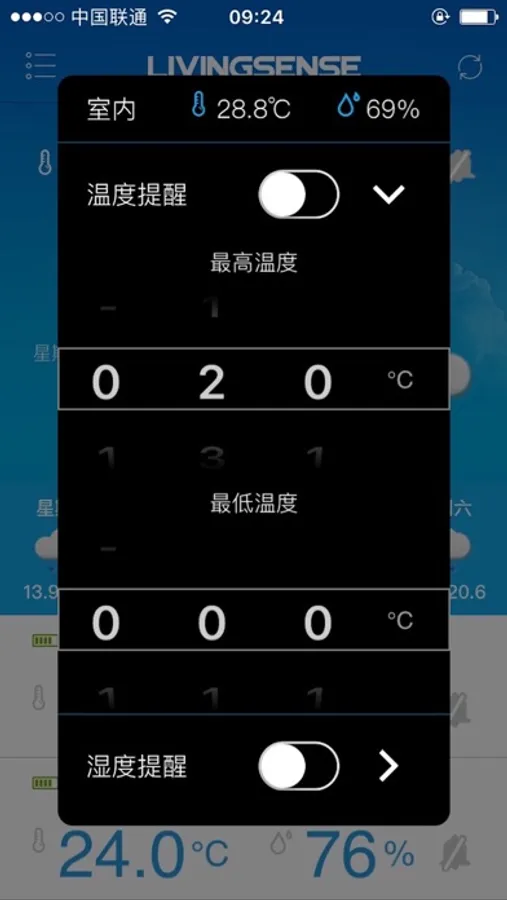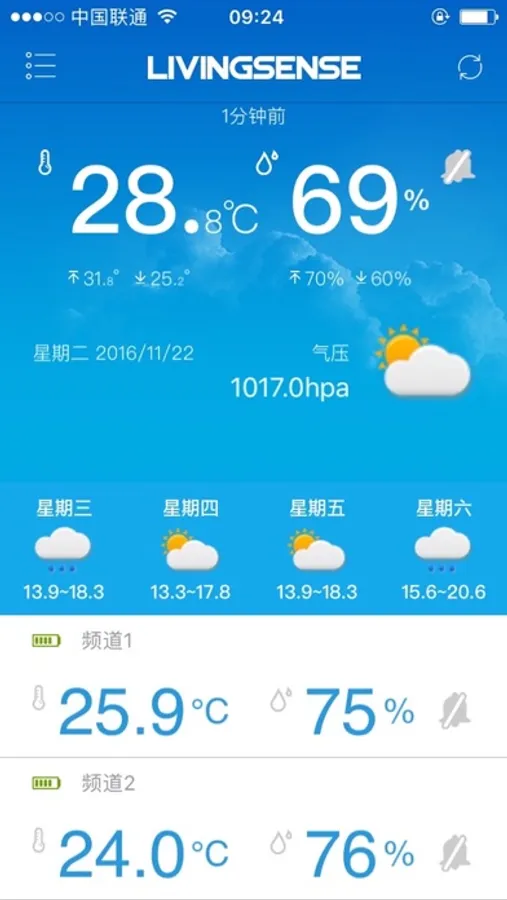 Through connecting the weather forecast device, Living Sense can get the weather report from mobile phone.