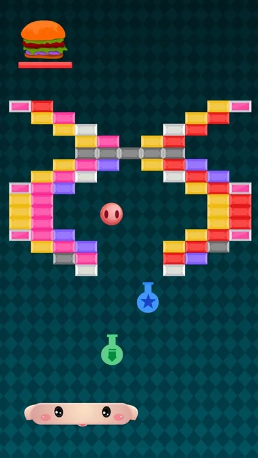 (BB) game player with the fingers to control the movement of the ball, don't let it fall, the bricks are destroyed.