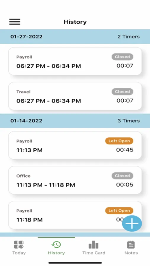 Payroll, Office, Travel, and Work Order Timers