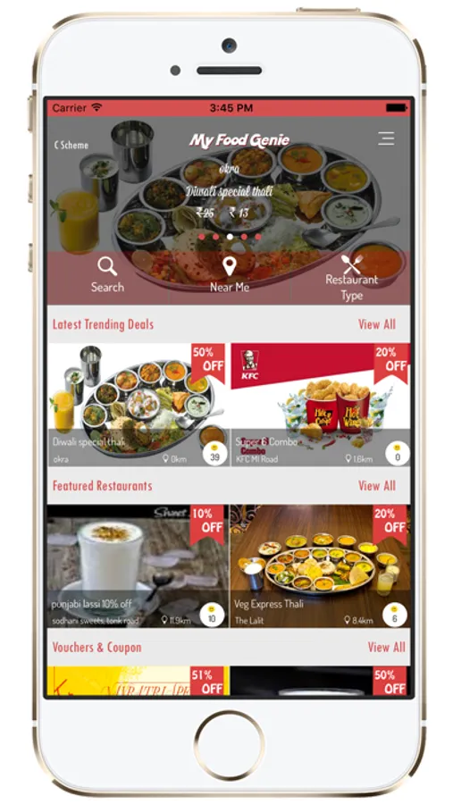 A customer simply browsing My Food Genie app with their Mobile, Tablet, iPhone, Desktop, Laptop can view & book their deals across the city.