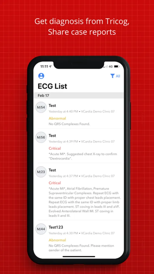 Tricog clinic customers can track the ECGs conducted at their clinic and the interpretation for them.