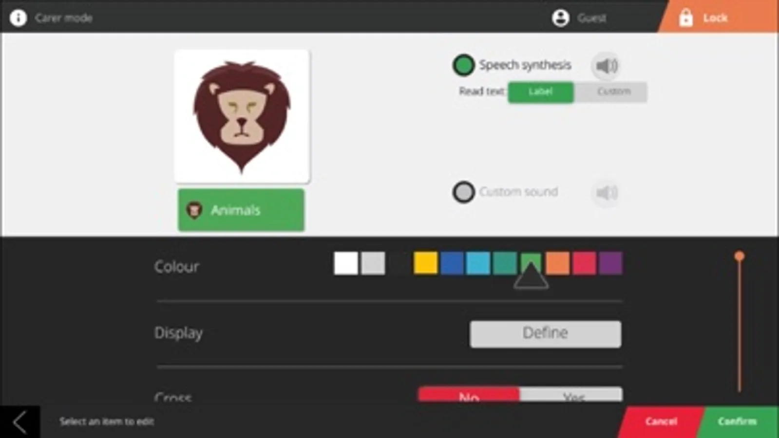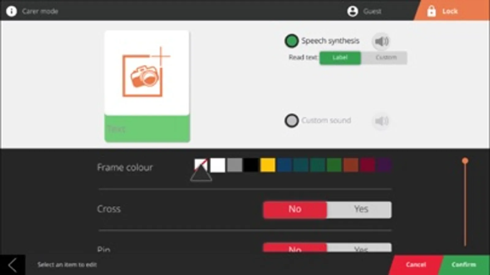 Texts, voices, images, frames, frame colors, categories... everything is configurable, tailoring to the needs of the user, as well as the communication method chosen.