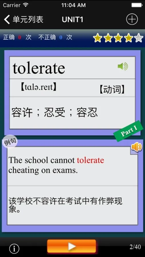 学完每课后,你可以通过测试检验自己的学习成果,对于难记的单词可以反复学习。