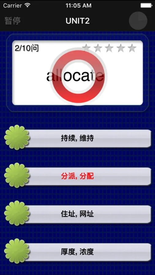 ・同时,您还可以对较难记忆的单词进行收藏,并且可以根据单词的难易程度选择收藏的等级。