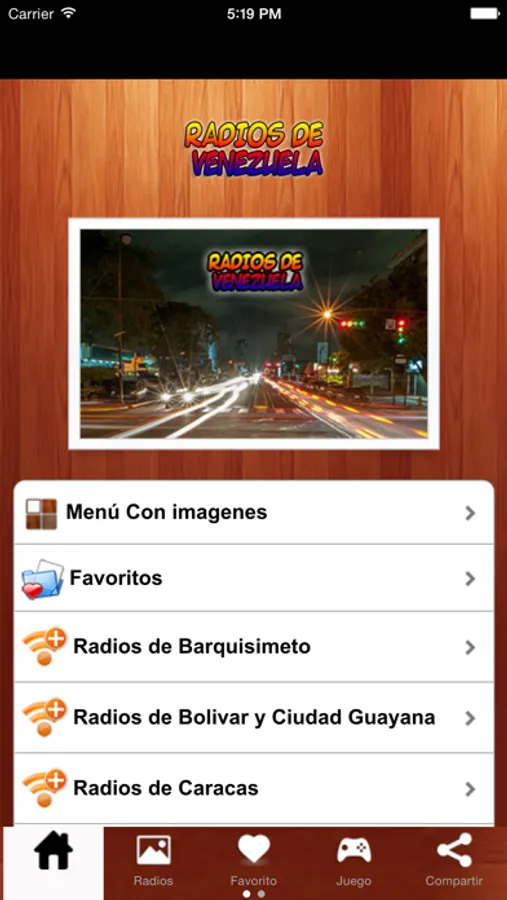 Radios de Venezuela está agrupada en distintas ciudades para que sea más fácil encontrar tu radio favorita, también dispone de un menú de imágenes para que localices el logo de tu emisora favorita, incluso hemos incorporado una página de Favoritos, donde puedes elegir la radio que quieres que aparezca en esa sección con solo apretar el corazón de color gris.