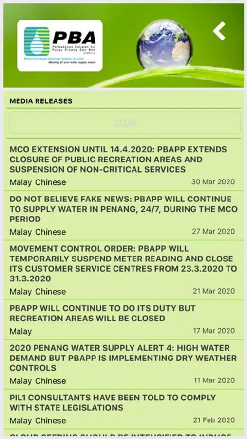 - View your monthly Penang water bill and pay