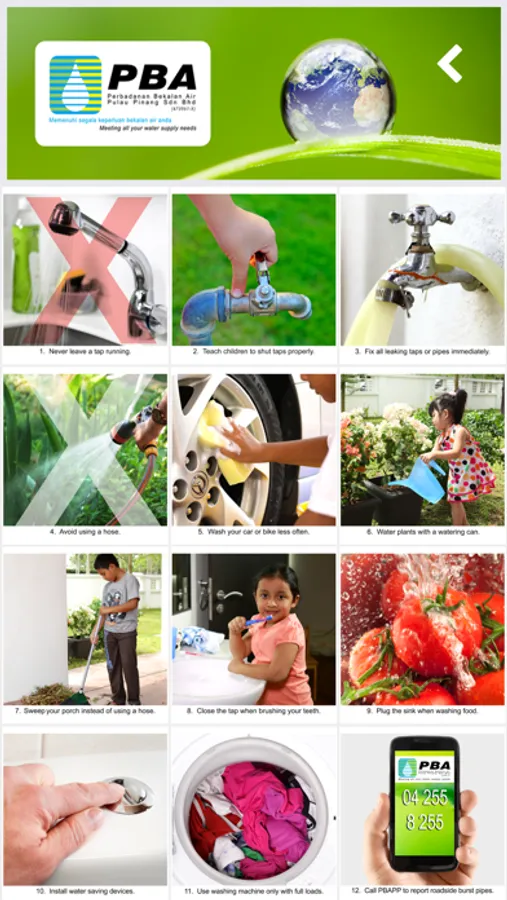 - Learn useful tips on water savings