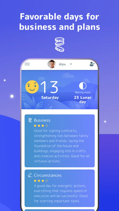 - Ability to add profiles of your loved ones by date of birth: convenient for joint planning affairs