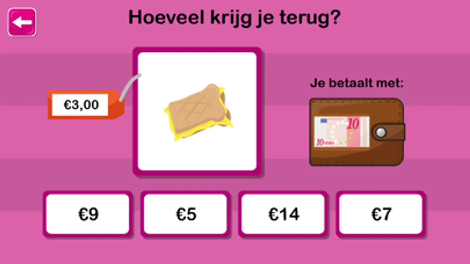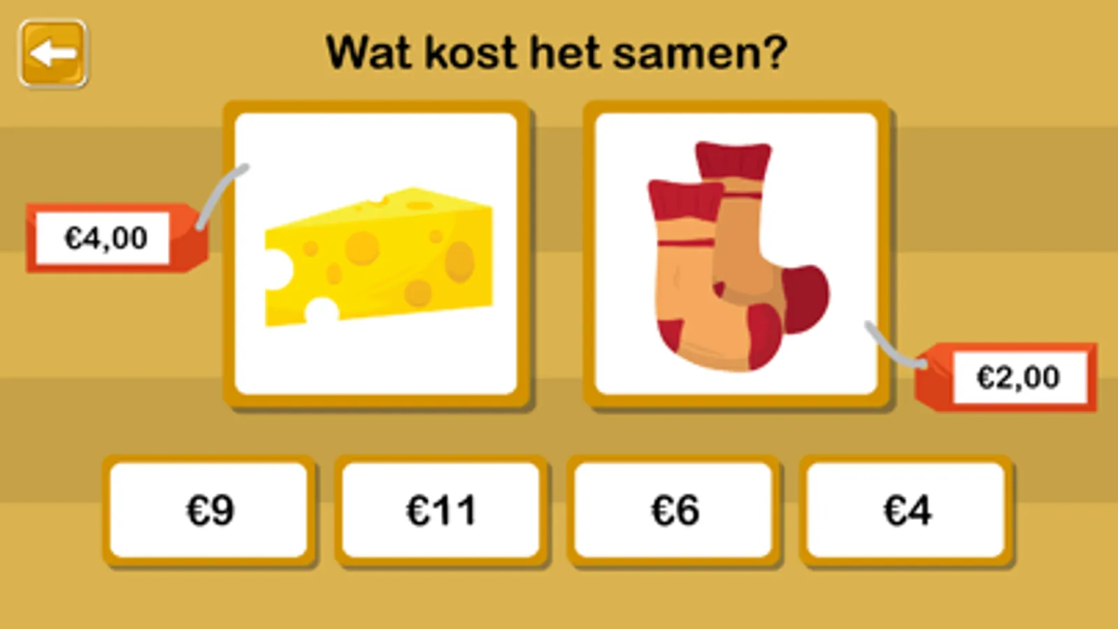 The application calculating with money was developed by Meester Dennis. This app was created to follow the six mostly used exercises to help children practicing calculating with money. The children learn to add money, to put it down, see and understand price lists and calculate how much cash must be returned.