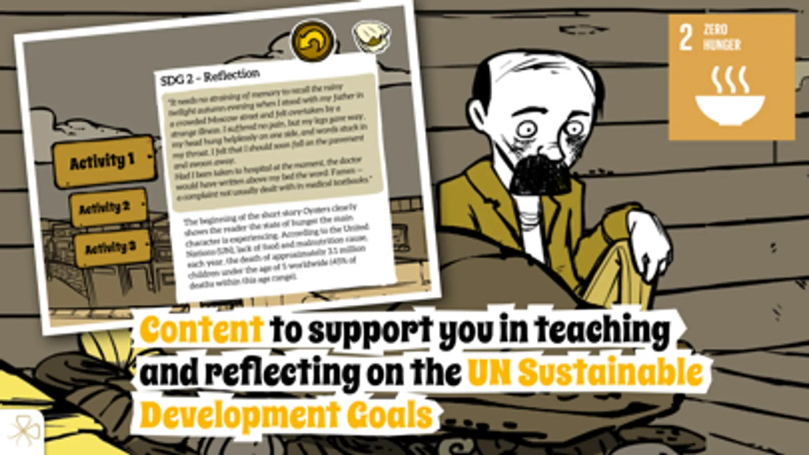 Download "Oysters" to find a universal short story by Chekhov (translated to English, Spanish, and Portuguese), information on the Sustainable Development Goals - the sustainability goals from United Nations -, science experimentation activities, and reflection and social action activities suggested by experienced teachers and scientists.