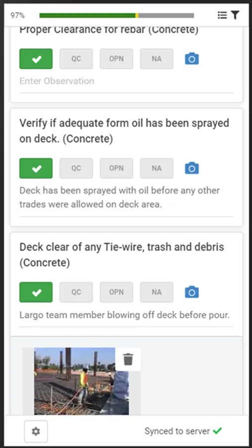 1. The project Work-to-complete List and daily progress reports to monitor WIP and control deficiencies.