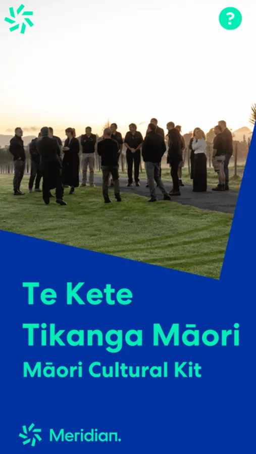 Te Kete Tikanga Māori is an educational resource for Meridian staff and whānau to learn about Te Ao Māori (the Māori world). It focuses on basic teachings to support their day to day mahi (work).