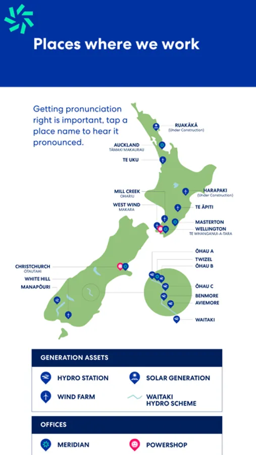 One of the app’s key features is that it allows staff to input their own personal information to create a customised pepeha. Meridian staff will find this resource particularly helpful when leading, or being part of health and safety discussions that involve the local Māori community.