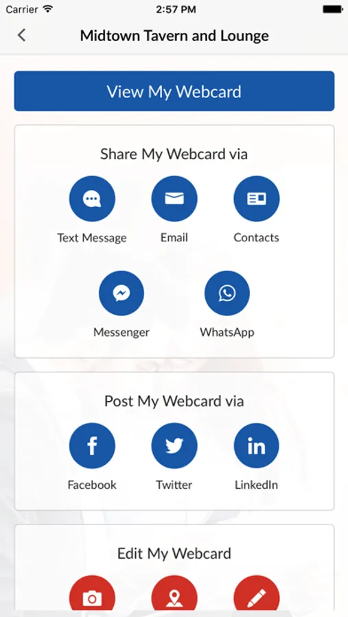 Manage and share your Webcard from Web.com with this great FREE App! No need for a physical business card – instantly share your key contact information and link to your personal Webcard page from Web.com. Your Webcard is your free online business page for Web.com – sign up for free and promote your business to customers and contacts today.
